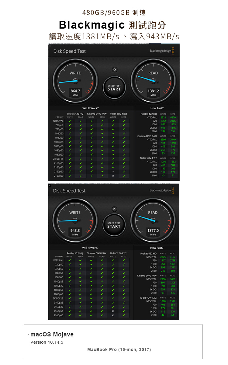 速度會最快,其他款式尚無測試,請自行斟酌購買與自行測試或購買TEKQ的E12-240/480/960/1960G Thunderbolt 3專用SSD