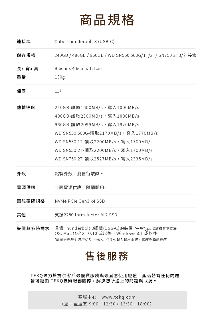 【福利品 TEKQ】CUBE Thunderbolt 3 PCIe M.2 NVMe SSD 外接硬碟-