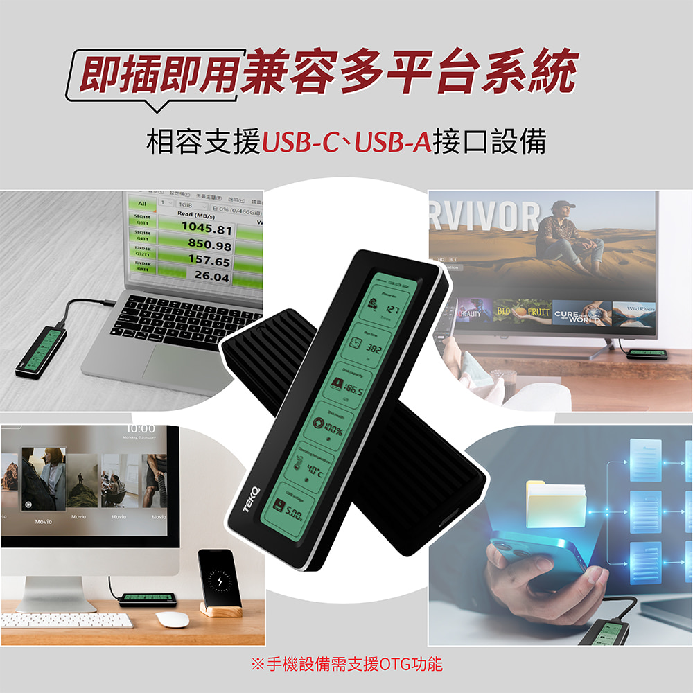 【TEKQ】 數位顯示 M.2 SSD 固態硬碟 外接盒 0GB-夜幕黑