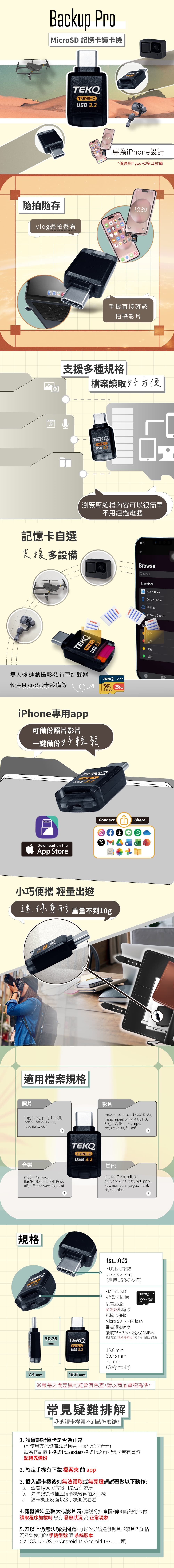 【TEKQ】 Backup Pro 隨身備份 MicroSD 讀卡機 |下載專用App即用 (Type-C)